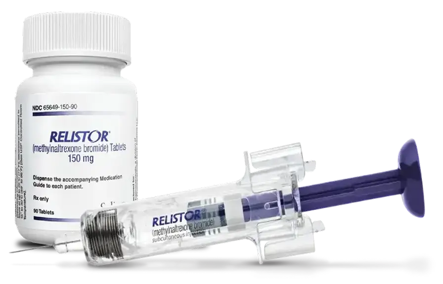 REFERENCES: 1. RELISTOR [prescribing information]. Bridgewater, NJ: Salix Pharmaceuticals. 2. Streicher JM, Bilsky EJ. Peripherally acting μ-opioid receptor antagonists for the treatment of opioid-related side effects: mechanism of action and clinical implications. J Pharm Pract. 2018;31(6):658-669. 3. Bader S, Jaroslawski K, Blum HE, Becker G. Opioid-induced constipation in advanced illness: safety and efficacy of methylnaltrexone bromide. Clin Med Insights Oncol. 2011;5:201-211. 4. Yuan CS, Foss JF, Osinski J, Toledano A, Roizen MF, Moss J. The safety and efficacy of oral methylnaltrexone in preventing morphine-induced delay in oral-cecal transit time. Clin Pharmacol Ther. 1997;61(4):467-475. 5. Yuan CS, Wei G, Foss JF, O’Connor M, Karrison T, Osinski J. Effects of subcutaneous methylnaltrexone on morphine-induced peripherally mediated side effects: a double-blind randomized placebo-controlled trial. J Pharmacol Exp Ther. 2002;300(1):118-123. 6. Symproic. Prescribing information. BioDelivery Sciences International; 2020. 7. Movantik. Prescribing information. RedHill Biopharma Ltd; 2023. 8. Pergolizzi JV Jr, Christo PJ, LeQuang JA, Magnusson P. The use of peripheral μ-opioid receptor antagonists (PAMORA) in the management of opioid-induced constipation: an update on their efficacy and safety. Drug Des Devel Ther. 2020;14:1009-1025.